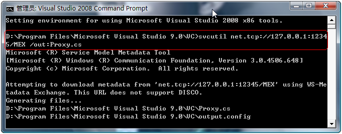 要想實(shí)現(xiàn)客戶端,我們創(chuàng)建一個(gè)Console的客戶端應(yīng)用程序,然后需要用SvcUtiil.exe生成代理類,方法如下