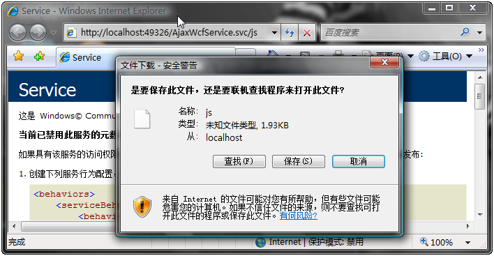 訪問第二步打開的AjaxWcfService.svc網(wǎng)址后面添加/js的網(wǎng)址,如圖所示: