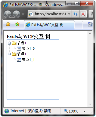 上文做了下Ajax與WCF進行json交互的簡單介紹,本文闡述一個具體的實際應用:ExtJs與WCF交互,生成樹.也很簡單.先看看最終的效果吧: