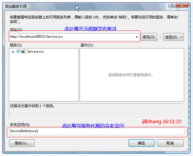 第一種:知道服務元數據地址,通過在項目中添加服務引用。