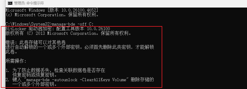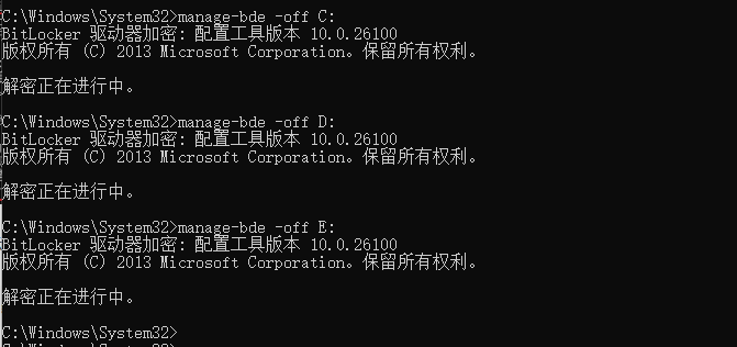 win11 新電腦想要解除 bitlocker,但沒找到解除界面;于是使用命令行來解除;