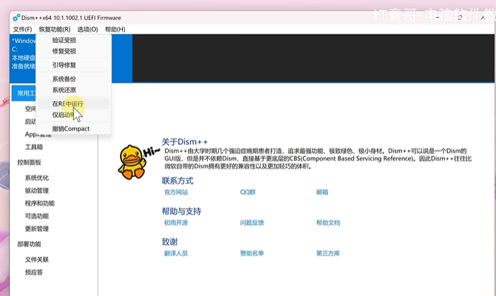 在以下鏈接下載 Dism++ 10.1.1002.2 工具,或者看視頻,找到里面的鏈接下載一樣的工具;