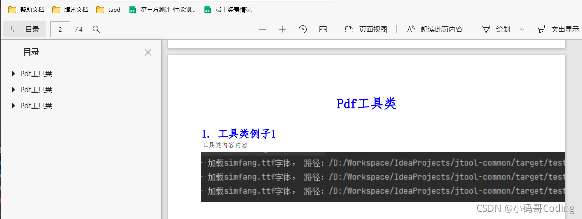 外話,pdf的需求基本都是需要定制的,不是一個工具類能搞定的。這里給出處理pdf的另一個包,這個包是apache的包,對于讀pdf非常好用。需要定制pdf導出的話,還是需要多了解這兩個包,然后定制自己的工具類。