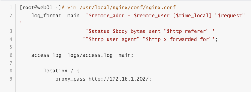 最終結(jié)論:物理機(jī)192.168.26.1----->192.168.26.201 172.16.1.201 ------->172.16.1.202 如果想要統(tǒng)計(jì)到底有多少客戶端在訪問(wèn)后端服務(wù)器?不管客戶端IP是多少,后端服務(wù)器上顯示的IP都為 反向代理服務(wù)器的IP,在做反向代理服務(wù)器的時(shí)候,要發(fā)送報(bào)文信息,我們要求在報(bào)文中攜帶字段,包 含客戶端IP,對(duì)于后端服務(wù)器而言,就可以看出到底是哪個(gè)客戶端在訪問(wèn)。 實(shí)驗(yàn)三:在查看訪問(wèn)日志的時(shí)候能夠顯示到訪問(wèn)的真實(shí)ip。