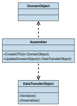 我們不應該讓領域對象依賴DTO,也不該在DTO中加入許多計算邏輯,所以,為了聯系DTO和領域對象,往往會有一個Assembler作為中間人: