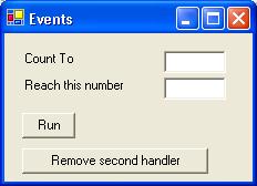 現在你應該了解到我們正在做什么。我們初始化了NunberReachedEvnetHandler委托(也可以對其他對象)。注意我上面提及的oCounter_NumberReached方法簽名的相似性。