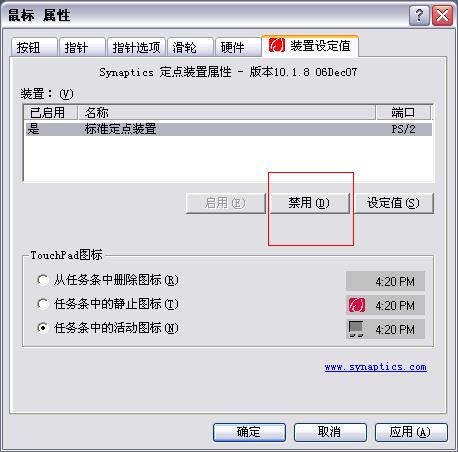 可是這個筆記本有個煩人的觸摸板,打字的時候,一不小心碰一下,鼠標就不知道跑到什么地方去了,真是火上澆油啊,但咱是專業人士不是,怎么能被這點小困難難倒,在一番搜索之下,找到了關掉這種討厭觸摸板的方法: