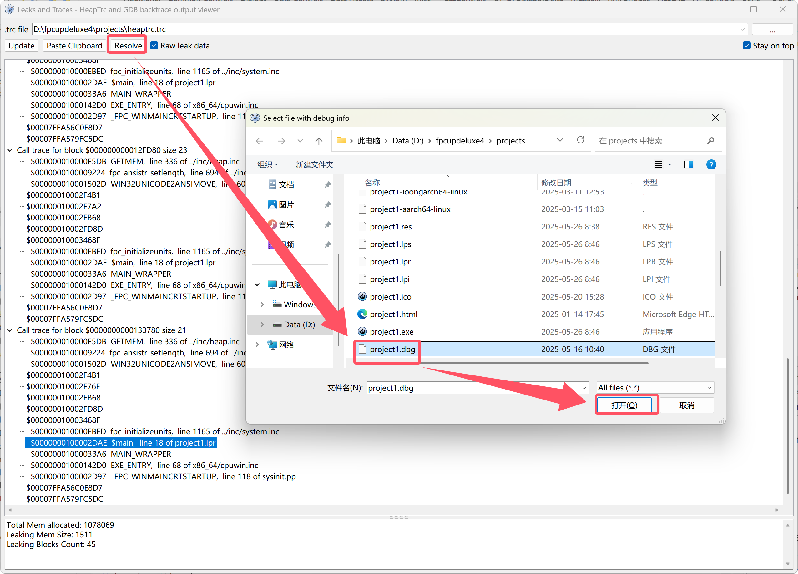 展開相應(yīng)的call Trace 列表然后雙擊相應(yīng)對(duì)行就可以在lazarus IDE打開對(duì)應(yīng)文件位置,這就是存在內(nèi)存泄漏的代碼。