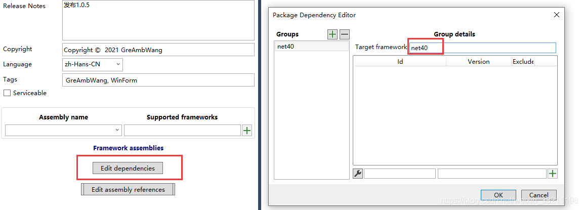 還需添加項目依賴,則依賴哪些框架比如.NETFramework,.NETStandard等