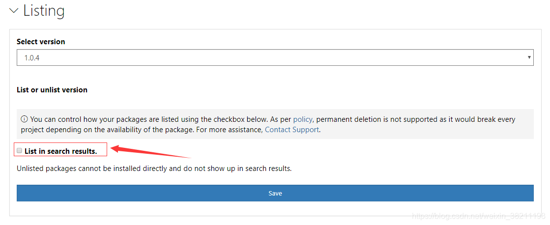 在Listing中,把不需要的版本去除勾選,則在NuGet搜索中不顯示出來