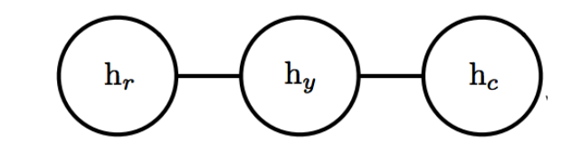 其能量函數可表示為 \(E(\vec{v}, \vec{h})=-\vec{b}^T \vec{v}-\vec{c}^T \vec{h}-\vec{v}^T W \vec{h}\) ,其中 \(\vec{b}, \vec{c}, W\) 為網絡所需要學習的參數。