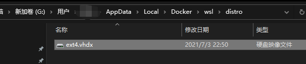第一次成功啟動 docker desktop 之后,你可以在 C:\Users\用戶名\AppData\Local\Docker\wsl\data 這個目錄下,找到ext4 文件,它就是 wsl 使用的虛擬機文件,我們使用docker 的所有操作和下載的所有文件,都會在這個目錄中執(zhí)行。