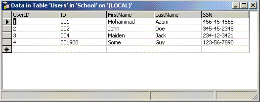 SqlConnection("Server=localhost;Database=School;Trusted_Connection=true"); SqlDataAdapter ad = new SqlDataAdapter("SELECT * FROM Users", myConnection); DataSet ds = new DataSet(); ad.Fill(ds); gvUsers.DataSource