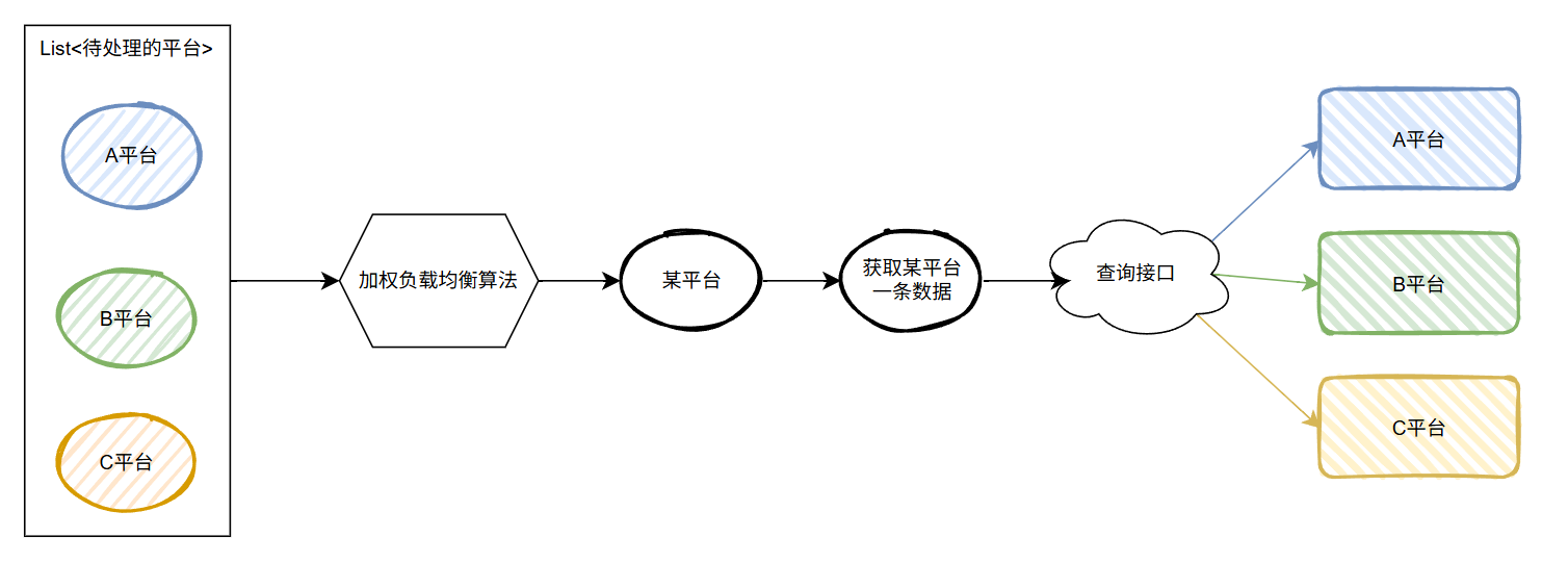 這一批數據,分屬于不同的平臺,所以調用下游查詢接口的時候,我會告訴它有的數據要去 A 平臺查詢,有的數據要去 B 平臺查詢...