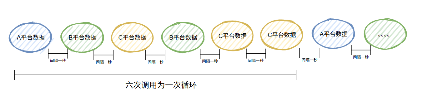 那我們是不是可以換一個思路,先獲取待處理數據的平臺集合,然后從平臺集合中每隔一秒選一個平臺出來,再獲取這個平臺的一條數據,調用查詢接口: