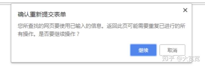 此外如果嘗試重新執(zhí)行POST請(qǐng)求,瀏覽器也會(huì)彈一個(gè)框提示下這個(gè)刷新可能會(huì)有副作用,詢問要不要繼續(xù)。