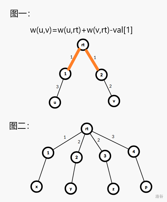 首先,對于葉子節點,我們設給它賦的值為 \(w_u\)。則對于 \(i\neq w_u\),則初始化 \(dp_{u,i}=c_u\),讓 \(dp_{u,w_u}=0\)。