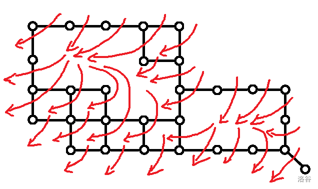 我們把障礙與 \(3\) 個不可達的點給刪去,就得到以下的圖: