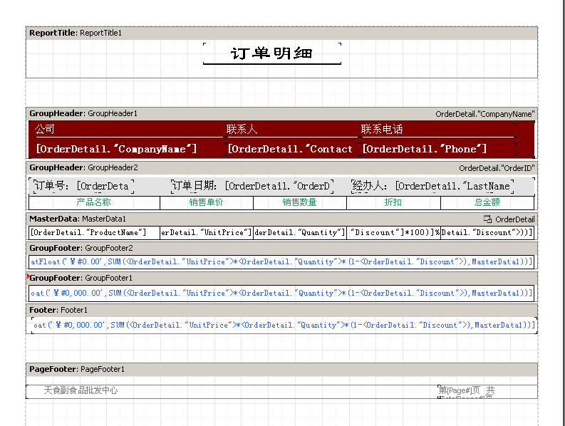 下圖就是一個條帶式報表的設計界面,很多報表工具比如Access,FastReport等等都是如此。實際上,若報表設計時采用控件拖拽的方式則一般是采用條帶式設計體驗。