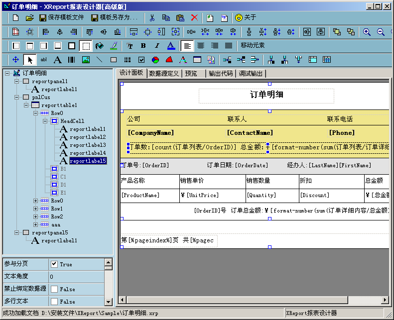 平面報表設計體驗帶來了樹狀的報表元素結構,而為此相配套,筆者又推出了多層次的樹狀的數據源模型,這兩個樹狀結構緊密配合,就能將報表數據填充倒報表模板中而形成最終的報表輸出。