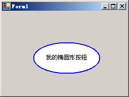 完成了OnPaint方法后,我們就獲得了一個(gè)具有橢圓形外觀的用戶控件,我們編譯程序,然后進(jìn)入一個(gè)窗體設(shè)計(jì)器,在工具箱的“我的用戶控件”欄目,上面可以看到已經(jīng)有一個(gè) EllipseButton 項(xiàng)目,按下這個(gè)項(xiàng)目就可以在窗體上放置一個(gè)橢圓形的按鈕了,你可以在屬性列表中設(shè)置它的文本。然后運(yùn)行程序,可以看到運(yùn)行的窗體上顯示了一個(gè)橢圓形的按鈕,但這個(gè)按鈕就像圖片一樣,毫無生機(jī),我們還需要改進(jìn)這個(gè)控件來實(shí)現(xiàn)動(dòng)態(tài)效果。