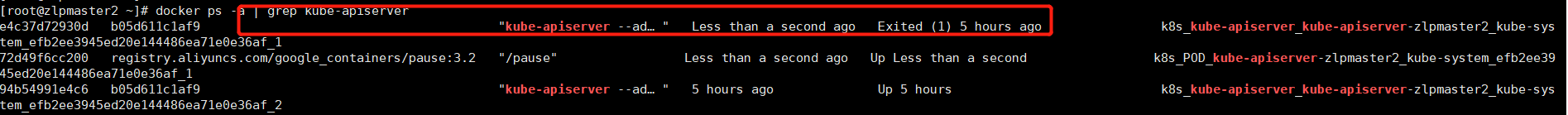 ##在pod所在節點通過docker ps -a | grep kube-scheduler查找關于pod在該節點創建的docker容器發現,有殘余的docker容器存在,同時退出的容器的名稱ID都小于存活的容器的名稱ID(就是名稱最后面的_ID),此時Kubernetes就認為已經退出的容器才是正確的并且一直在等待他們進入up的狀態。