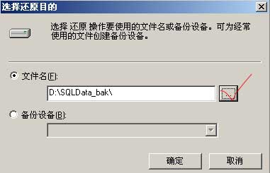 其中此處的文件名的格式應該是.bak格式的;而不是MDF格式的;
