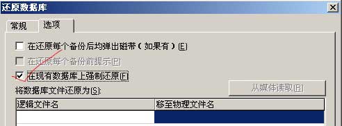 此處的邏輯文件名和物理文件名,一定要與新建數據庫時的物理文件名一致,否則會出錯;