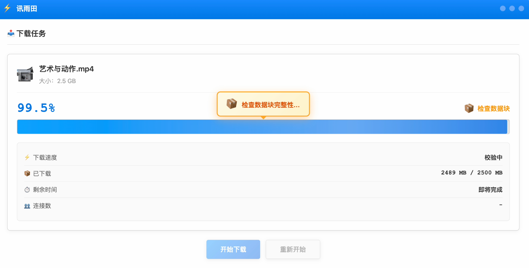 你恍然大悟:原來如此,最后 1% 不是在下載,而是在驗證和合并文件小塊!